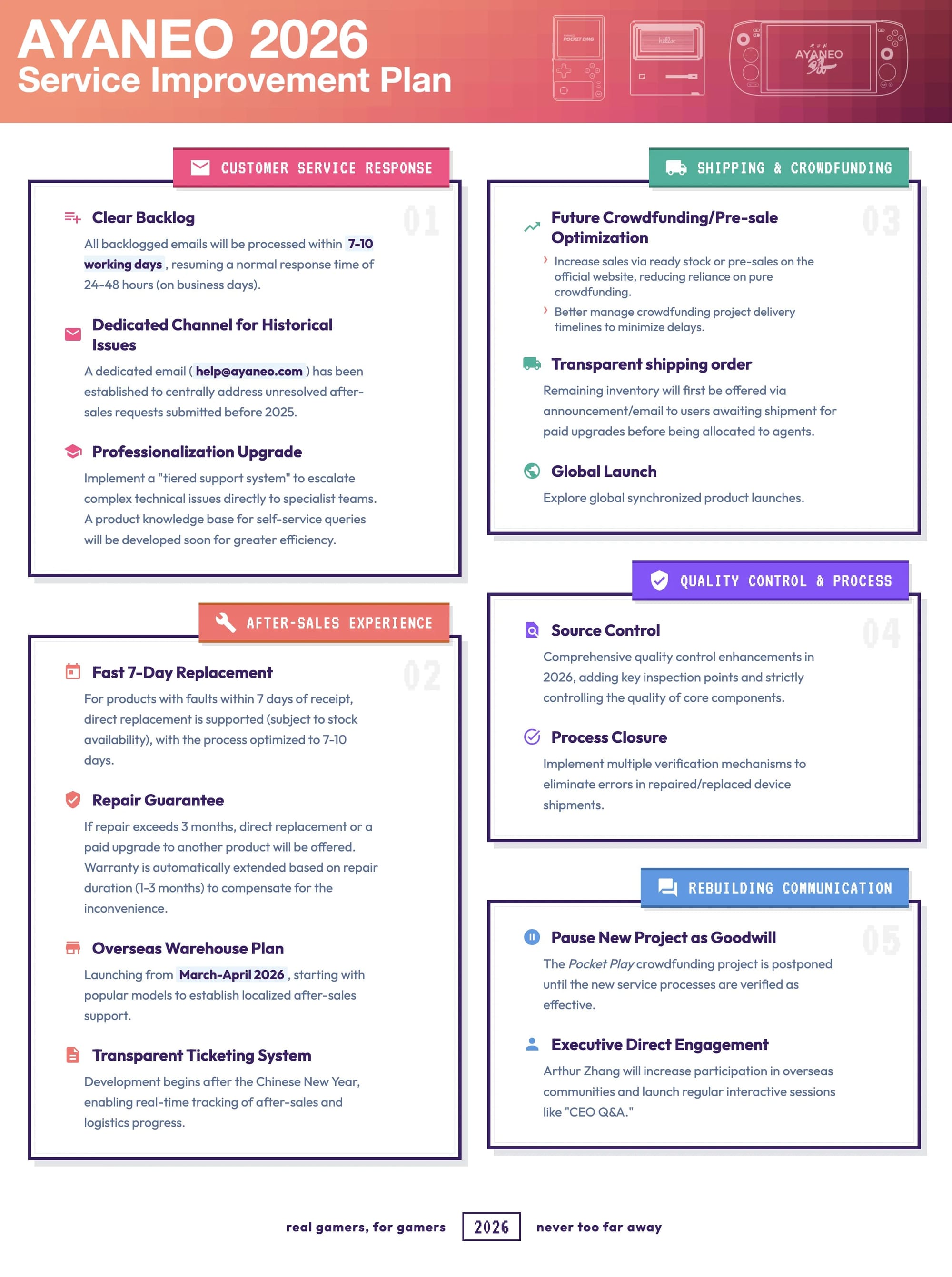 - AYANEO Promises To Do Better: On a Reddit post over on r/ayaneo, Arthur Zhang, the CEO of AYANEO, has responded to the recent concerns expressed by the retro handheld community with promises and detailed plans for the company to improve in 2026.